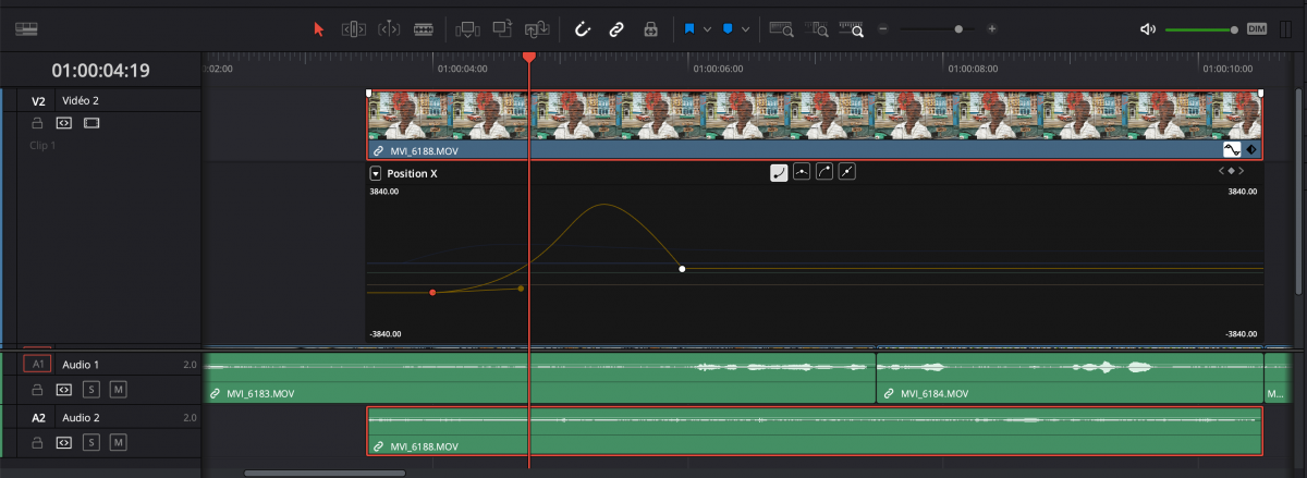 Il y a également l’amélioration du lissage des images clés d’animation dans la Timeline, permettant de jouer sur la position, l’échelle… lors d’une animation de texte ou autre. BlackMagic développe ici DaVinci Resolve comme Adobe l’a fait avec sa suite en déclinant des outils des logiciels spécialisés comme After Effects et Audition au sein de Premiere Pro. On note que BlackMagic décline des outils de la page Fusion et étalonnage dans les pages de montage (Page Montage et Page Cut).