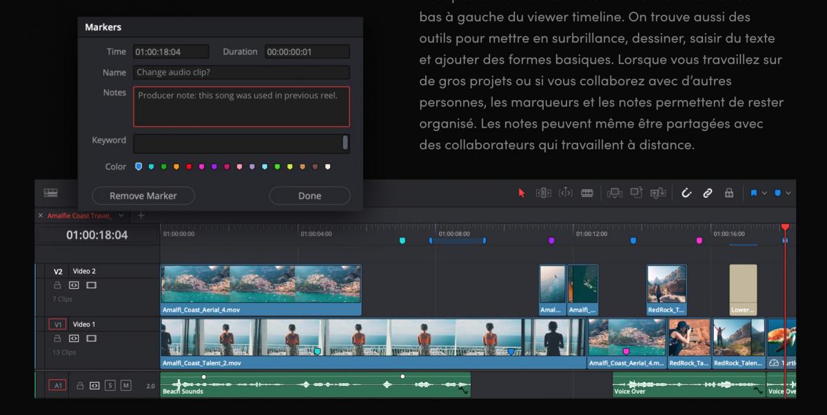 Loïc Gagnant : L’une des nouveautés importantes est l’arrivée des presets directs pour exporter vers DropBox ou DropBox Replay. Le principe, c’est de permettre l’export des films post-produits via DaVinci Resolve sur la plate-forme DropBox pour que les personnes auxquelles on accordera les droits d’accès puissent y ajouter des commentaires. Ces derniers seront automatiquement intégrés et mis à jour dans le logiciel DaVinci Resolve sous formes de marqueurs intégrés à la timeline.