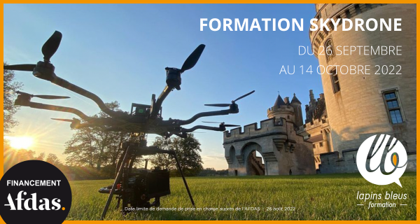 La prochaine session de la formation Skydrone : Préparation à l’examen drone théorique, maîtrise du pilotage et réalisation de prise de vues aériennes aura lieu du 26 septembre au 14 octobre 2022. La date limite de demande de prise en charge auprès de l’AFDAS pour les intermittents est le 26 août 2022.