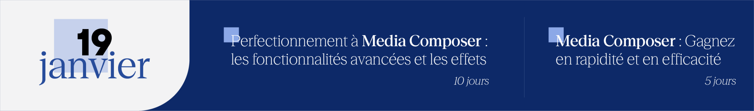 Cette formation en 10 jours répond aux demandes que nous avons reçues de monteurs souhaitant à la fois se remettre à niveau sur les toutes dernières fonctionnalités et monter en compétences sur la gestion des effets sur Media Composer. Ce programme reflète le profil à la fois des monteurs exerçant sur Media Composer au quotidien et le profil de ceux ayant exercé sur un autre logiciel pendant une période et qui souhaitent se mettre à jour.