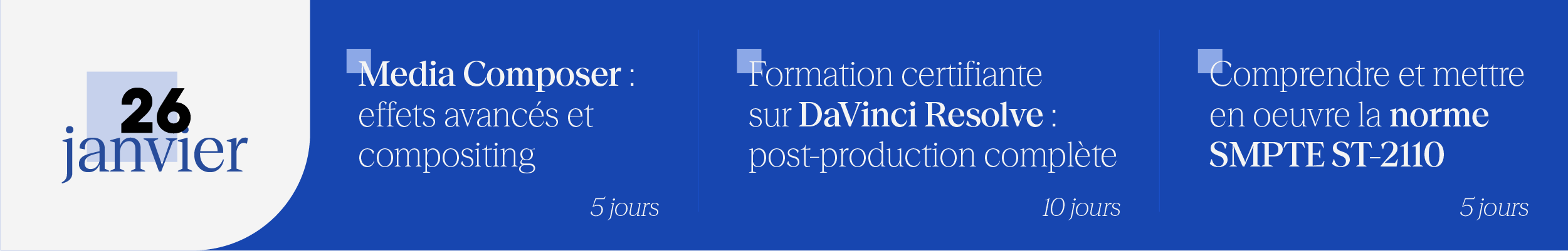 🎯 MĂ©tier de D.I.T. on set, mĂ©tier d’Ă©talonneur, principes de la lumière, Media Composer, DaVinci Resolve, norme SMPTE ST-2110, nos prochaines sessions vous attendent !
