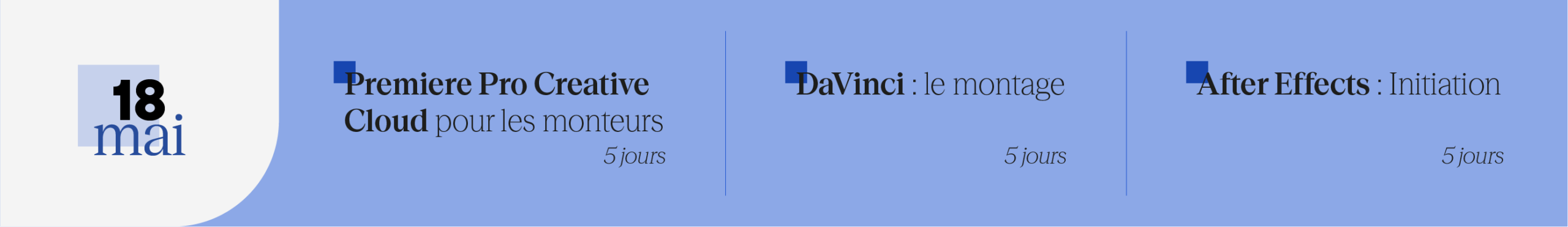 Cette formation est spécialement conçue pour les monteurs ayant déjà une expérience avec des logiciels de montage virtuel. Le programme aborde la découverte de Premiere Pro au sein de Creative Cloud, jusqu’à des techniques avancées de montage et compositing. Les participants apprendront à synchroniser, modifier la vitesse des clips. Ils seront également introduits au montage audio, aux effets de compositing et de colorimétrie.