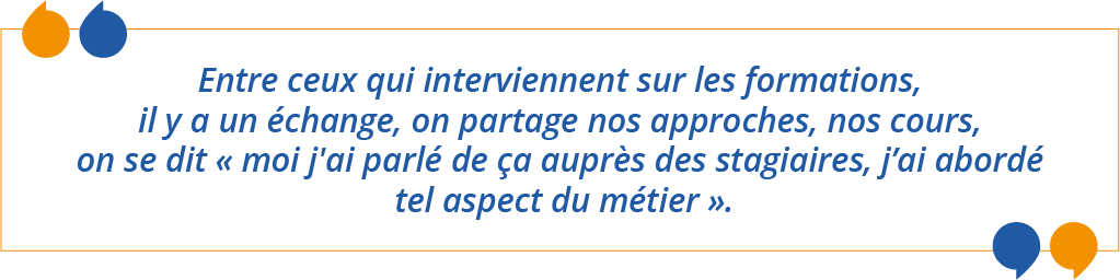Et puis ça m’a aussi permis de repenser un peu le métier. Parce que ce qui est bien à l’ADIT, c’est qu’entre ceux qui interviennent sur les formations, il y a un échange, on partage nos approches, nos cours, on se dit « moi j’ai parlé de ça auprès des stagiaires, j’ai abordé tel aspect du métier ». Du coup, on se rend compte des méthodologies de chacun, de sa façon de travailler et c’est très intéressant de voir comment chacun a sa propre vision du métier.